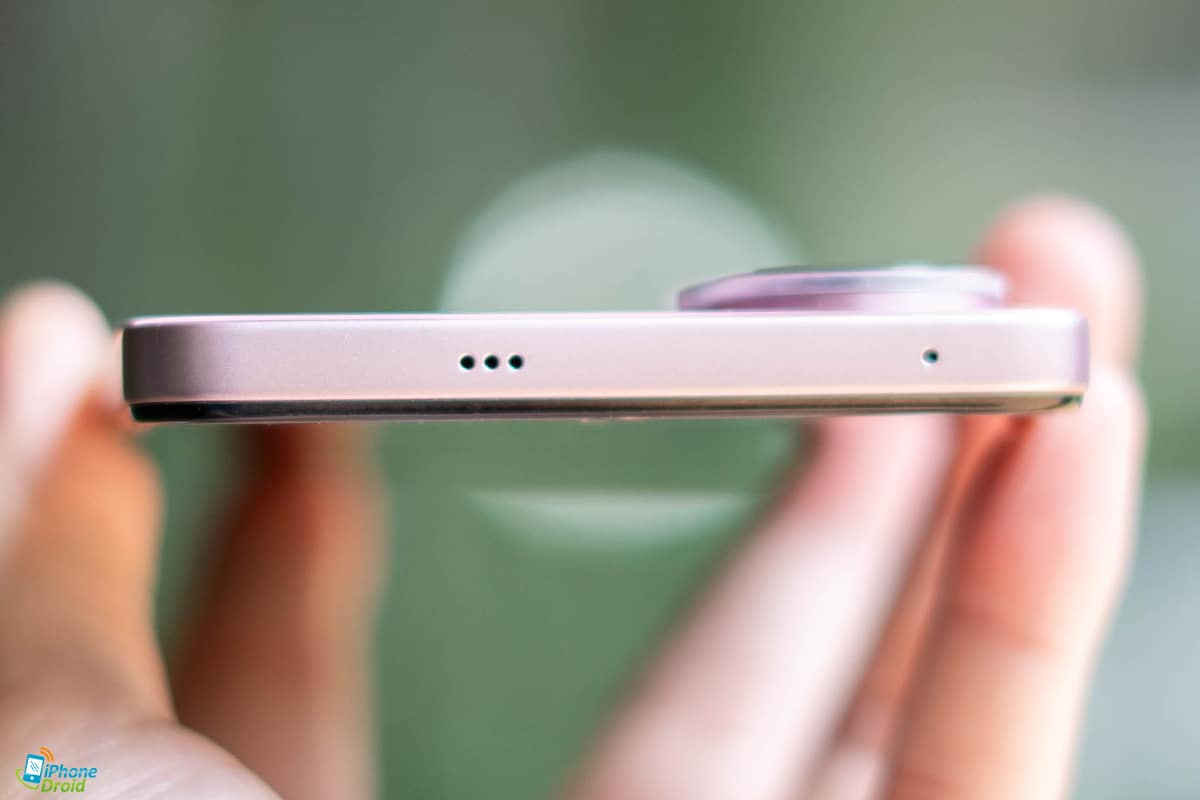 ด้านล่างจะเป็นช่องใส่ซิมการ์ด 2 ช่อง ตามด้วยไมโครโฟนตัวหลัก พอร์ต USB-C และลำโพงสเตอริโออีกตัว
