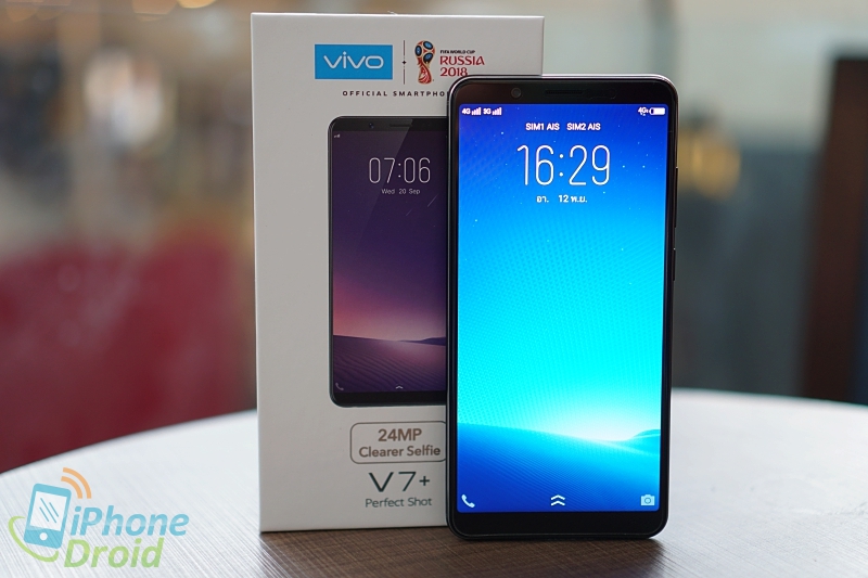 vivo V7+ เป็นสมาร์ทโฟนรุ่นแรกจากทาง vivo ที่มีดีไซน์หน้าจอแบบ FullView ตามสมัยนิยม และชูจุดเด่นด้านการเซลฟี่ด้วยกล้องหน้าความละเอียด 24 ล้านพิกเซล