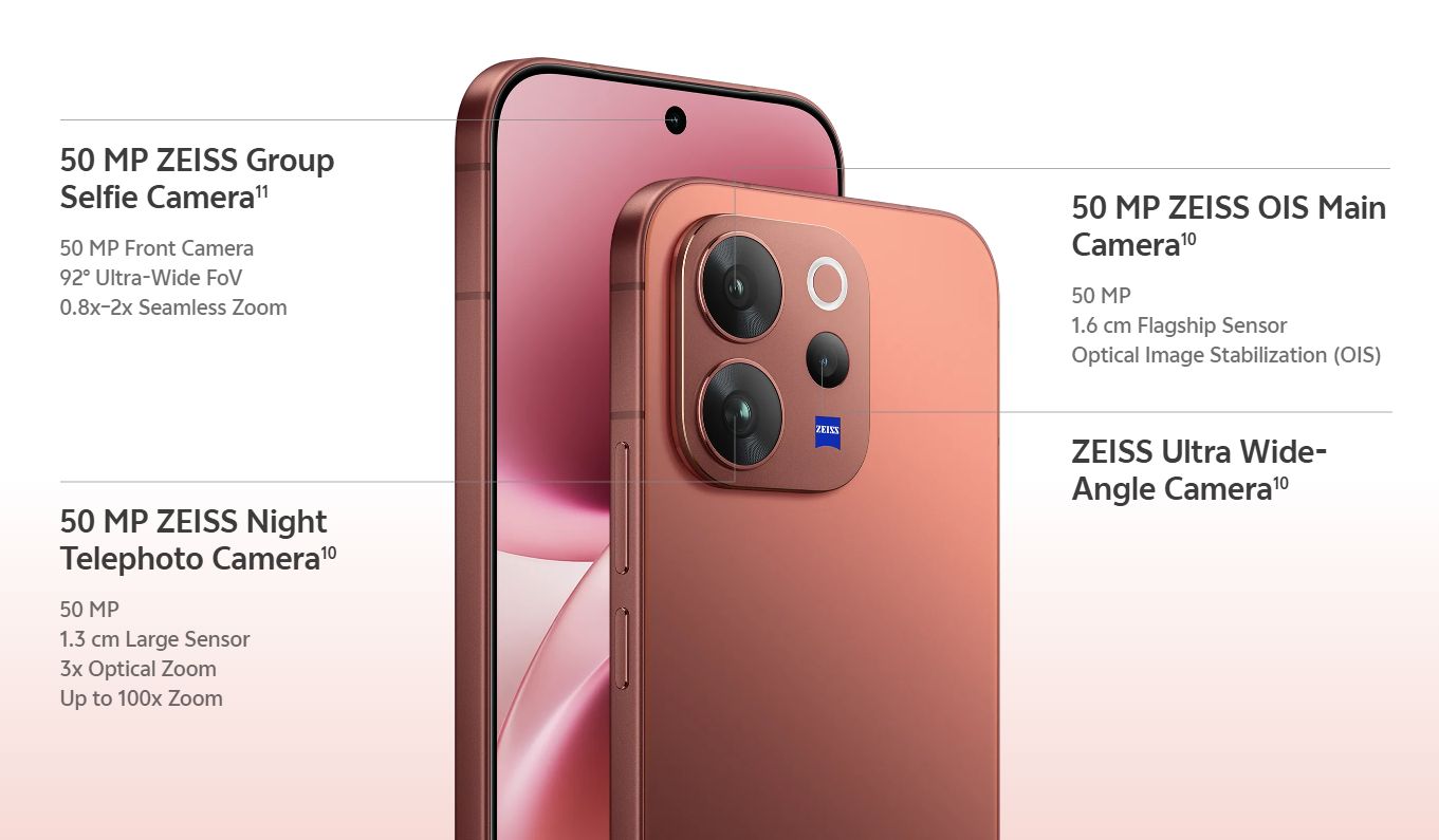 สเปคหลักของ V70 Elite ยืนยันจะใช้ชิป Snapdragon 8s Gen 3 ขณะที่รุ่น V70 จะได้ a Snapdragon 7 Gen 4 ทั้งนี้ ทั้ง 2 รุ่นยังได้หน้าจอแสดงผลเท่ากันที่ 6.59 นิ้ว แบบ OLED คมชัด 1.5K ความสว่างสูงสุด 5000 นิต และรองรับ Refresh Rate 120Hz