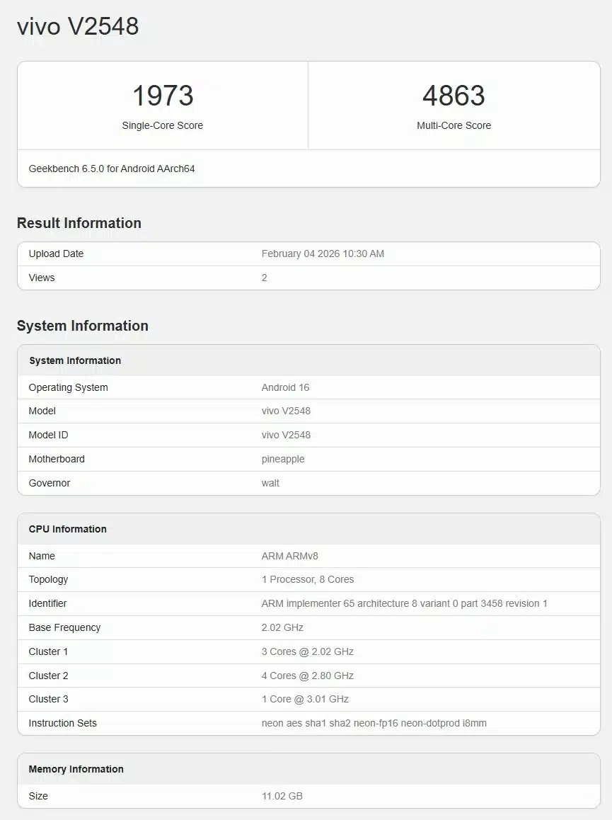 ผลทดสอบของ vivo V70 Elite มาแล้ว! เผยความแรงของชิป Snapdragon 8s Gen 3 ก่อนเปิดตัว โดย Map 5 ก.พ. 2026 ผู้เขียน Map 5 ก.พ. 2026 14 vivo V70 Series เตรียมเปิดตัวในเดือนกุมภาพันธ์นี้แล้ว ก่อนหน้านี้เราได้ทราบข้อมูลแบบชุดใหญ่จาก vivo อินเดียแล้ว ซึ่งยืนยันว่ารุ่น V70 Elite นั้นจะใช้ชิป Snapdragon 8s Gen 3 ล่าสุดก็มีผลทดสอบแรก หลุดออกมาโชว์ประสิทธิภาพของรุ่นนี้แล้วครับ! โดยผลทดสอบ Geekbench ของ vivo V70 Elite ทำคะแนน Single-Core ไปได้ 1973 และ Multi-Core 4863 คะแนนครับ รุ่นที่ทดสอบจะใช้ชิป Snapdragon 8s Gen 3 ความเร็วสูงสุด 3.01GHz และมี RAM 12GB ครับ ก็ถือว่าแรงสมกับที่ใช้ชิประดับ Snapdragon 8-Series เนอะ นอกจากเรื่องชิปเซ็ตแล้ว สเปคอื่น ๆ ของ vivo V70 Elite ก็จัดเต็มหมดเช่นกัน อาทิ จอ OLED 1.5K สว่างสูงสุด 5000nits RAM LPDDR5X ROM UFS 4.1 แบตเตอรี่ 6500mAh ชาร์จไว 90W กล้องหลัง 3 ตัวพัฒนาร่วมกับ ZEISS ระบบปฏิบัติการ Android 16 (OriginOS 6) ที่มา : Gizmochina GeekbenchSnapdragon 8s Gen 3vivovivo V70vivo V70 Elite 0 FacebookTwitterPinterestTelegram โพสต์ก่อนหน้า Apple ปล่อยอัปเดต iOS 26.3 Release Candidates เตรียมปล่อยตัวเต็มสัปดาห์หน้า โพสต์ถัดไป Galaxy S26 Series อาจมาพร้อมฟีเจอร์ EdgeFusion สร้างภาพด้วย AI ได้ใน 1 วินาที เรื่องที่เกี่ยวข้อง มาต่อเพียบ ! vivo X300e และ X Fold6 โผล่บน IMEI ยืนยันเปิดตัวทั่วโลกเร็วๆ นี้ vivo X500 Ultra อาจเปิดตัวเร็วขึ้นกว่าเดิม ส่วน X300 Ultra อาจเป็นเรือธงที่หนักที่สุด ! มีรุ่น Max ด้วย!? จอมหลุดเผย vivo X300 Max รุ่นแบตฯใหญ่ 7000mAh | กล้อง 200MP จะเปิดตัวพร้อม X300 Ul... จอมแม่นเผย vivo X500 Series และ iQOO 16 จะได้หน้าจอแบน และคมชัด 2K ทุกรุ่น ยืนยันแล้ว! vivo V70 เตรียมเข้าไทย มาพร้อมเลนส์ ZEISS และเซอร์ไพรส์เพียบ มาแล้ว! vivo อินเดียอวดโฉม V70 | V70 Elite พร้อมยืนยันไฮไลท์สเปคครบ ก่อนเปิดตัวเดือน ก.พ.นี้