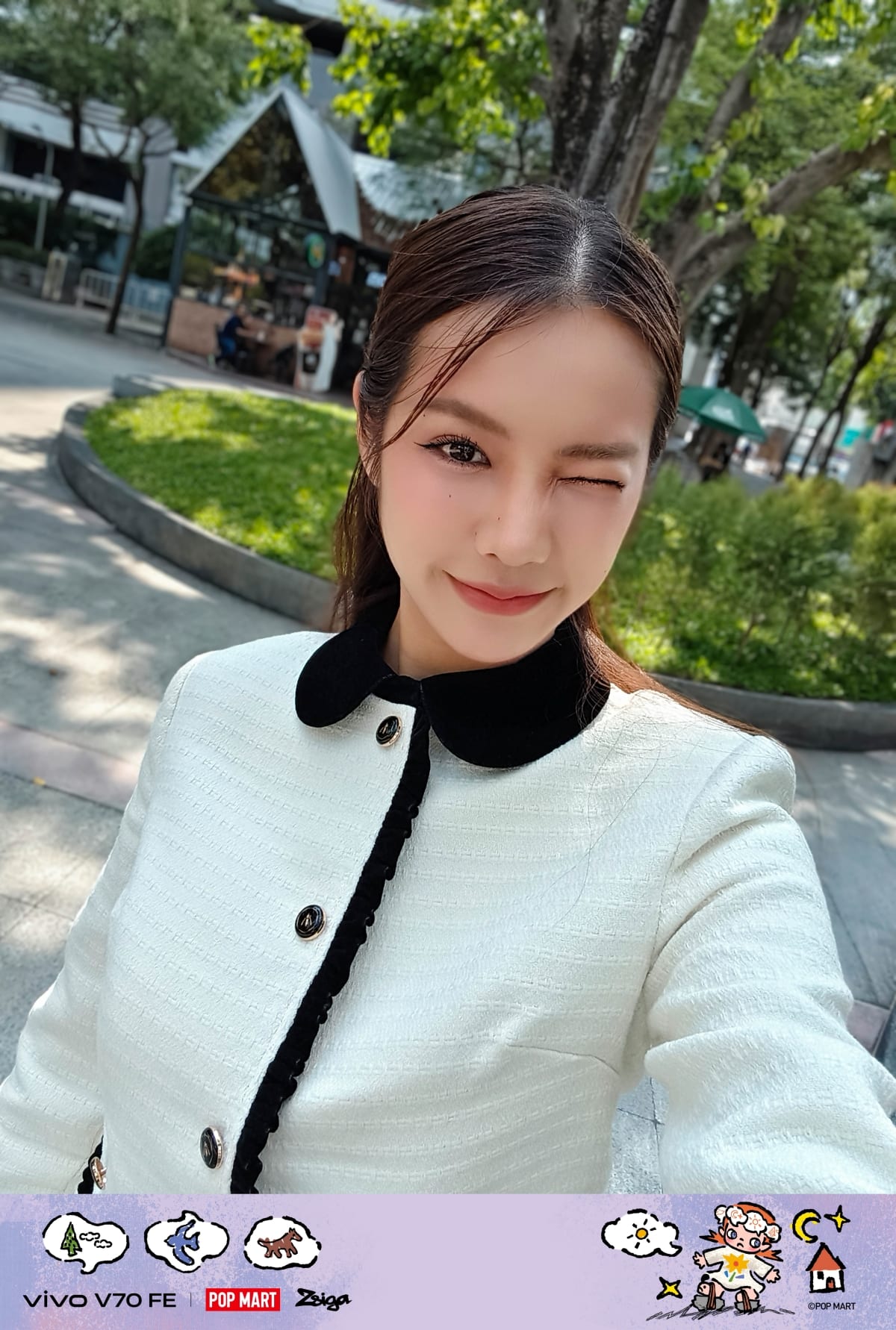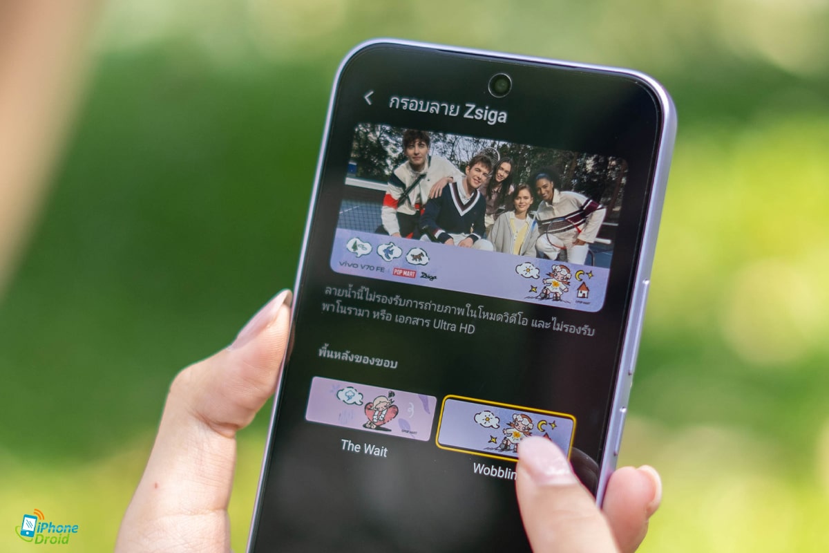 vivo V70 FE ยังจับมือความพิเศษกับและมีสไตล์ระหว่าง POP MART Zsiga เพื่อใส่ลายน้ำบนรูปภาพที่ทันสมัยและสวยงามมากขึ้นกว่าเดิม ทั้งยังเป็นการเพิ่มความสนุกสนานและคุณค่าในการสะสมอีกด้วย ซึ่งลายน้ำของน้อง Zsiga จะมี 2 แบบให้เลือก คือ The Wait และ Wobbling