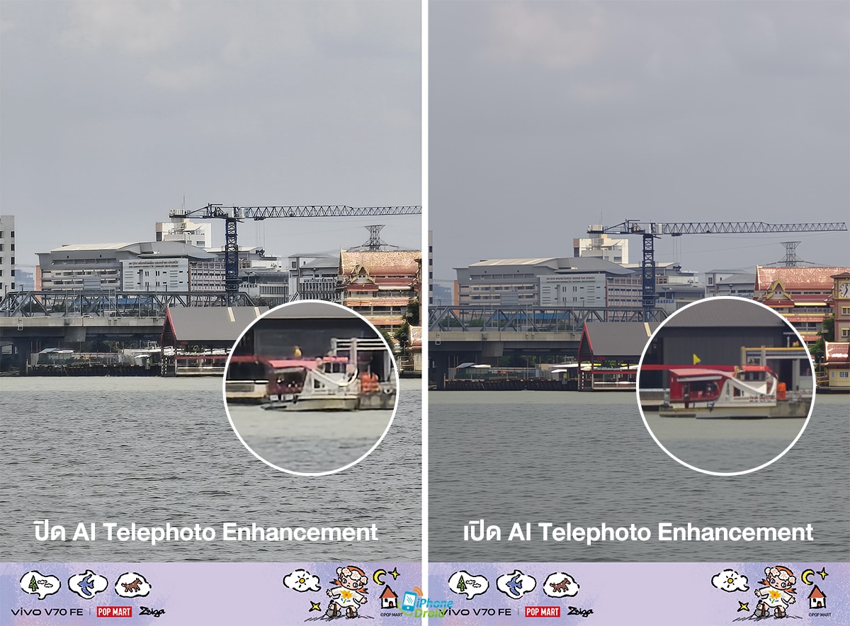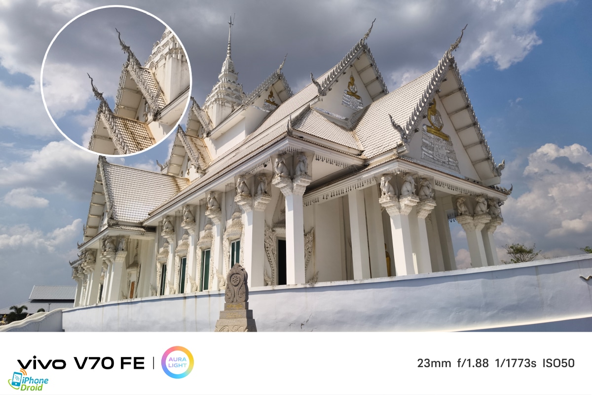 vivo V70 FE มาพร้อมกับเลนส์หลักที่ใช้เซ็นเซอร์ HP5 ที่ถูกใช้งานในรุ่นเรือธงกันเลยทีเดียว เซ็นเซอร์ตัวนี้มีขนาด 1/1.56″ ใหญ่ขึ้นกว่าเดิมถึง 56% (เทียบรุ่นก่อนหน้า) คมชัดสูง 200MP ด้วย ทำให้รับแสงมากขึ้นถึง 42% ช่วยให้ถ่ายภาพในหลายสถานการณ์ต่างๆ ได้มากกว่า ที่สำคัญ ด้วยเซ็นเซอร์นี้ยังให้เราได้ใช้งานการซูมตั้งแต่ระยะ 1x ไปจนถึง 10x ได้เลย แต่ที่ระยะ 10x จะได้ฟีเจอร์ AI Telephoto Enhancement แบบประมวลผล AI บน Cloud เพื่อปรับความคมชัดให้สูงขึ้นกว่าเดิม ซึ่งทำได้ดีแบบเห็นได้ชัดเลยด้วยครับ