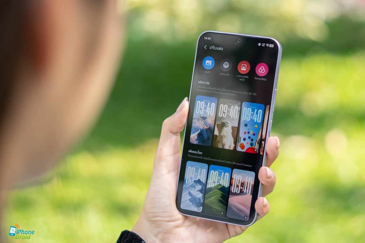 เรื่องของวอลเปเปเปอร์ก็มีตัวเลือกแบบสวยสุดๆ มีหลากหลายรูปแบบมาก แต่ที่โดดเด่นเลยคือจะเป็นแบบ Flip Cards ที่จะเคลื่อนไหวเมื่อเราขยับหน้าจอไปทางซ้าย กลาง และขวา ทำให้ดูสวยงามและแตกต่างมากขึ้นด้วย