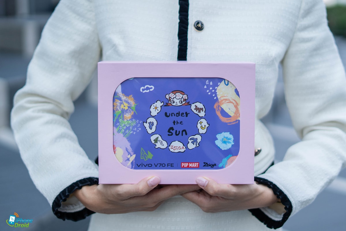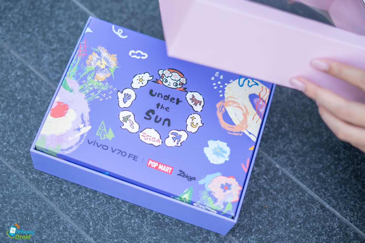 vivo V70 FE มีการจับมือกับทาง POP MART มีกล่องพิเศษ ZSIGA Premium Gift ที่ภายในกล่องจะมีอุปกรณ์เสริมมาให้ 2 อย่าง ได้แก่ กระเป๋าใส่โทรศัพท์ Zsiga V70 FE Exclusive Phone Bag และเคสโทรศัพท์ Zsiga V70 FE Exclusive Phone Case ที่มีความสวยงามทั้งหมดเลย เข้ากันมากๆ ครับ ใครที่อยากได้ แนะนำให้รับซื้อเลย เพราะของแถมจํานวนจํากัด ในสัปดาห์แรกของการวางจําหน่าย