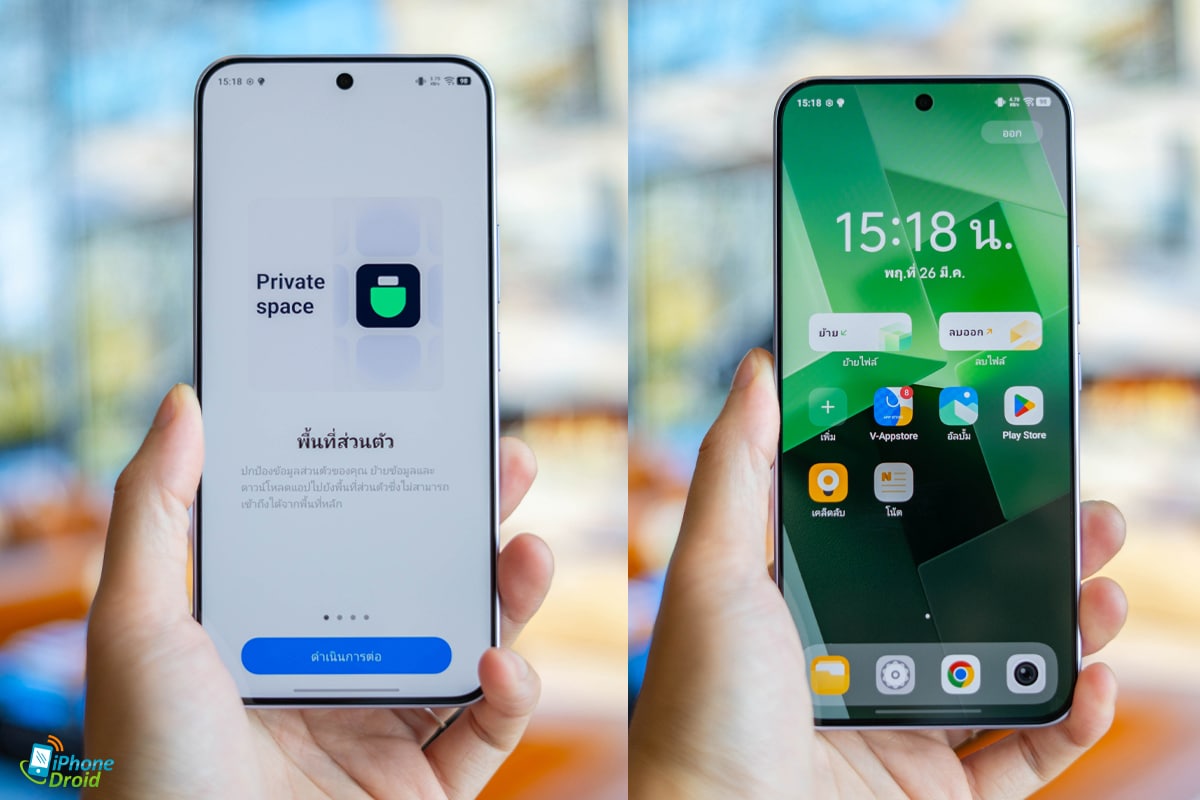 สำหรับ Private Space จะเป็นพื้นที่ส่วนตัวที่ซ่อนการใช้งานในส่วนของแอปส่วนล่าง ที่ต้องลากไปฝั่งซ้ายเพื่อเริ่มใช้งาน ใน Private Space นี้จะเป็นพื้นที่ที่แยกออกมาของเดิมทั้งหมด โดยต้องใช้รหัสผ่านชุดใหม่เพื่อเข้าถึงด้วย ทำให้ใครที่มีอะไรลับๆ หรือต้องใช้ในเรื่องความปลอดภัยสูงก็จะได้ประโยชน์ในจุดนี้ครับ