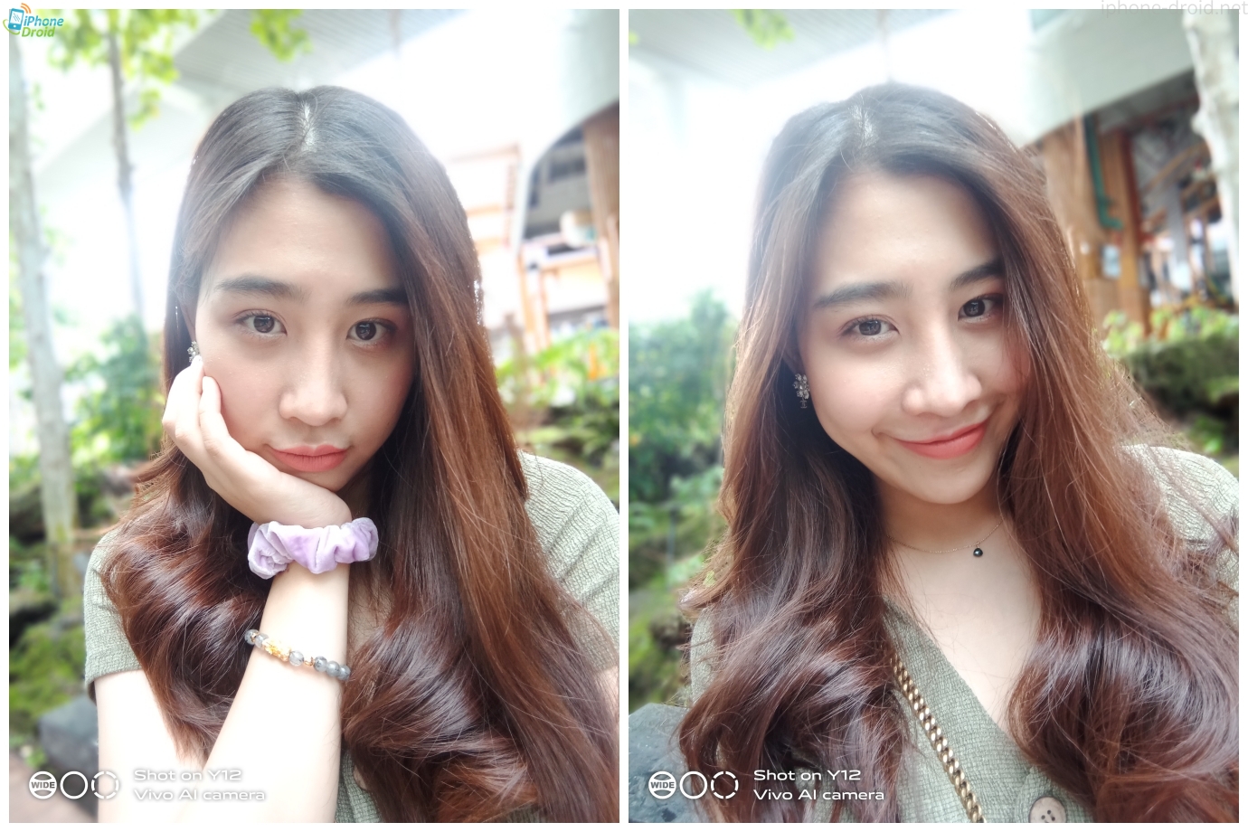กล้องหน้าของ Vivo Y12 มีความละเอียด 8 ล้านพิกเซล f/1.8 เก็บแสงได้สว่างมากขึ้น พร้อมด้วย AI Face Beauty ที่สามารถปรับแต่งรูปภาพได้อัตโนมัติ เพื่อให้รูปหน้าออกมาสวยงามที่สุดโดยที่ยังเก็บรายละเอียดได้อย่างครบถ้วน และที่สำคัญสำหรับยุคนี้คือถ่ายแล้วแชร์ได้ทันที ไม่ต้องเสียเวลาปรับแต่งให้ยุ่งยาก