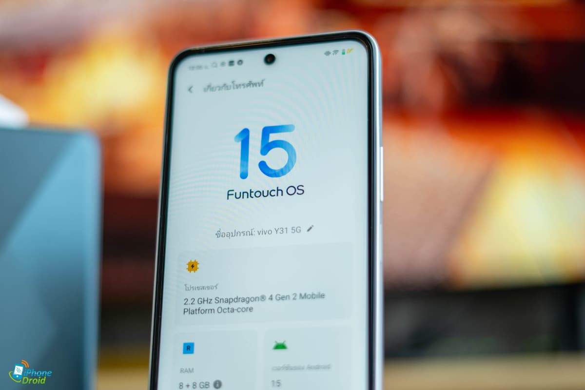 - ระบบปฏิบัติการ Android 15 ครอบทับด้วย Funtouch OS 15