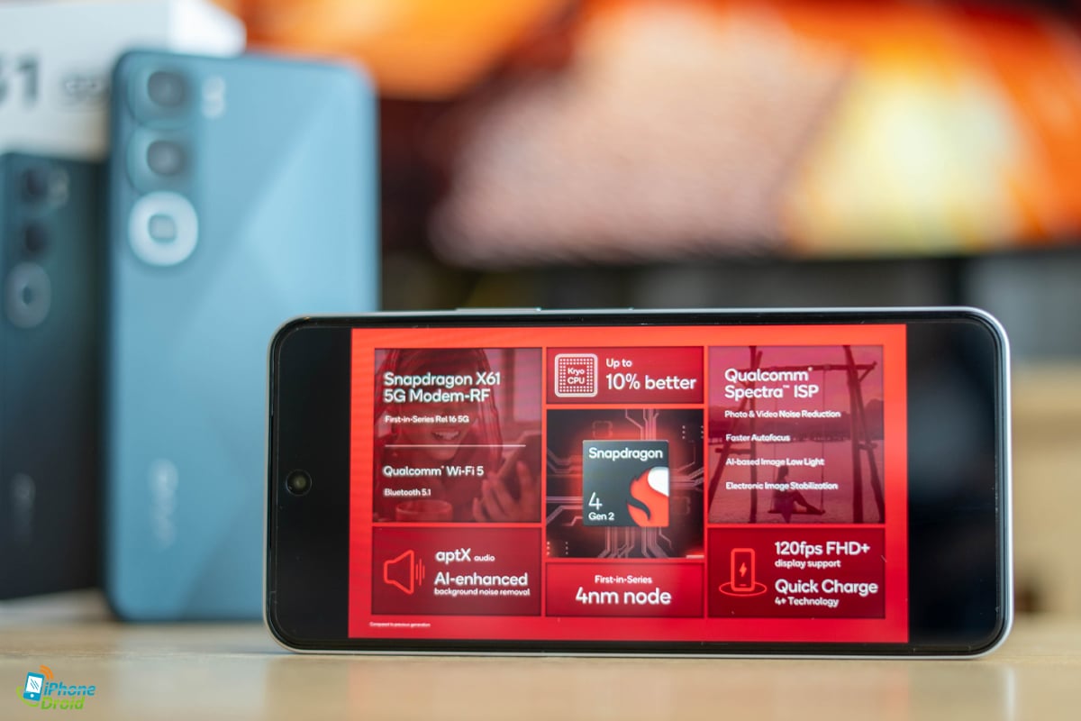 ในรุ่นนี้มาพร้อมกับหน่วยประมวลผล Snapdragon 4 Gen 2 ซึ่งเป็นชิปรุ่นเล็กของ Qualcomm ที่มีความเร็วเพียงพอในการใช้งานทั่วไป มี CPU แบบ Octa Core และความเร็ว Clock สูงสุด 2.2GHz ทั้งนี้ตัวชิปเซ็ตยังมีขนาด 4nm ที่ประหยัดพลังงานสูง และประสิทธิภาพสูงขึ้นกว่าเดิม 10%