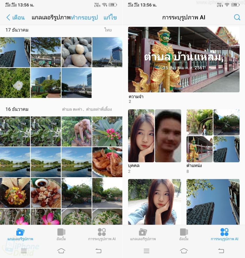 แอพอัลบั้มรูปภาพสามารถจดจำใบหน้าและระบุภาพได้ด้วย AI ไม่ว่าจะเป็นภาพบุคคล สถานที่ อาหาร เอกสาร ทิวทัศน์ เป็นต้น แล้วจัดรูปภาพเหล่านั้นให้อยู่ในอัลบั้มเดียวกันอัตโนมัติ