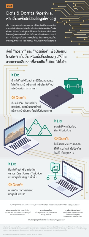 ในวันที่ 31 มีนาคมที่กำลังจะมาถึง ซึ่งตรงกับ “World Backup Day” หรือ “วันสำรองข้อมูลโลก” เวสเทิร์น ดิจิตอล จึงอยากชวนทุกคนหันมาเห็นความสำคัญของการปกป้องข้อมูลของตัวเอง โดยเริ่มต้นจากเช็คดูสิว่าสิ่งใด “ควรทำ” หรือ “ควรเลี่ยง” เพื่อจะได้มั่นใจว่าข้อมูลที่อยู่ในแท็บเล็ต โทรศัพท์มือถือ หรือแล็ปท็อป จะห่างไกลจากความเสียหายที่อาจเกิดจากความไม่ได้ตั้งใจ