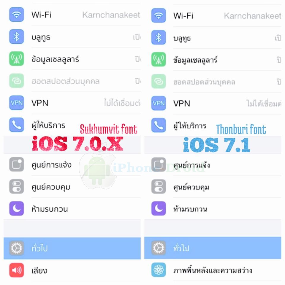 ขอบคุณภาพเปรียบเทียบฟอนต์สุขุมวิท iOS 7.0.x และ ฟอนต์ธนบุรี iOS 7.1 จากคุณ Arc En Ciel