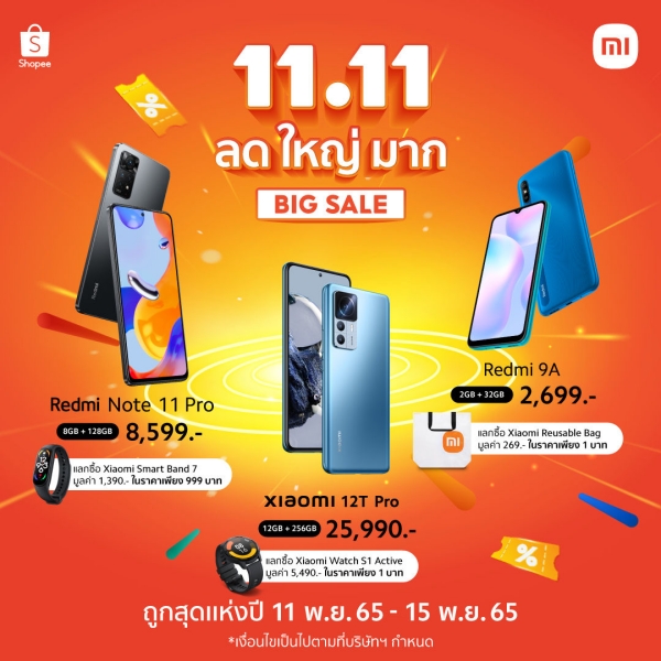 เสียวหมี่ ต้อนรับเทศกาลช้อปปิ้ง 11.11 มอบโปรโมชันพิเศษทั้งสมาร์ทโฟนและผลิตภัณฑ์ AIoT มากมาย ในวันที่ 11 พฤศจิกายน 2565 บนช่องทางจัดจำหน่ายออนไลน์ที่ Shopee และ Lazada เท่านั้น
