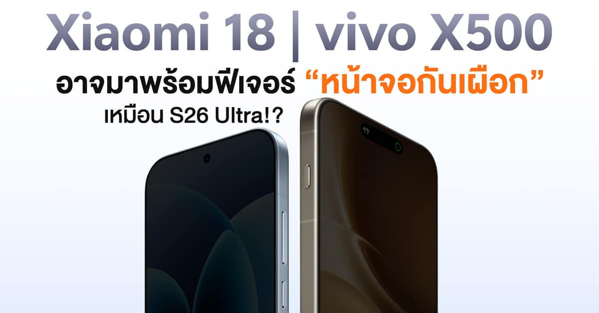 ลือแรง! Xiaomi 18 Series | Vivo X500 Series อาจมาพร้อมฟีเจอร์ “หน้าจอกันเผือก” เหมือน S26 Ultra!?