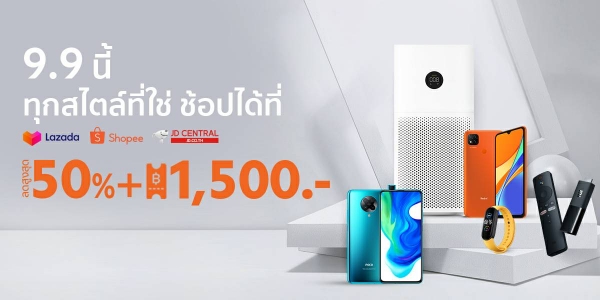 เสียวหมี่ ผู้นำด้านเทคโนโลยีระดับโลก ขนทัพสินค้าสมาร์ทโฟนและ AIoT มาพร้อมดีลราคาสุดพิเศษมากกว่า 50% และคูปองส่วนลดอีก 1,500 บาท ให้ใช้ร่วมสนุกไปกับมหกรรมช้อปปิ้งออนไลน์ 9.9 บนแพลตฟอร์มอีคอมเมิร์ซ Lazada, Shopee และ JD Central