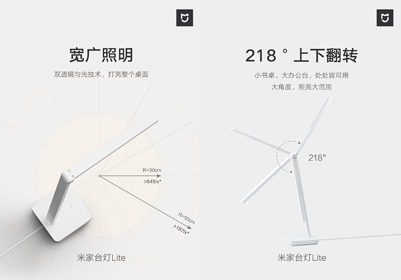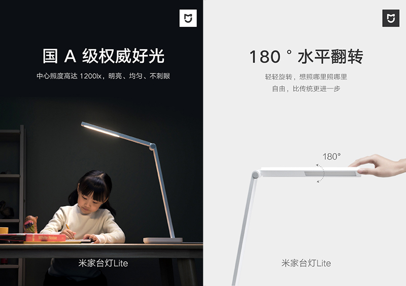 MIJIA Desk Lamp Lite ใช้วัสดุพลาสติก ABS ที่มีความแข็งแรง สามารถปรับตำแหน่งของแสงสว่างได้ด้วยการพับสุงสุด 218 องศา หรือหมุนได้สูงสุด 180 องศา โดยตัวแสงมาพร้อมกับการป้องกันสายตาที่อาจเกิดขึ้นได้จากแสงสีฟ้า โดยใช้แสงสว่างได้สูงสุด 1200 lumens