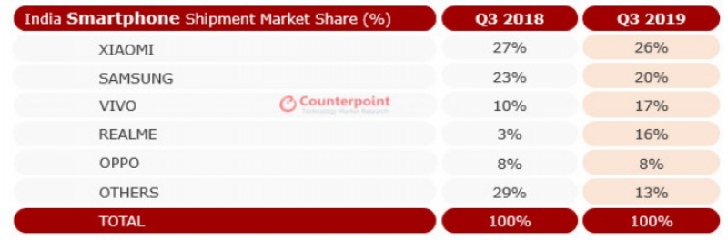 จากสถิติระบุว่าแบรนด์สมาร์ทโฟนจากประเทศจีนนั้นทำผลงานได้ดีมากกับตลาดประเทศอินเดีย ไม่ว่าจะเป็น Xiaomi, Vivo, realme และ OPPO โดยมี Samsung ขั้นกลางอยู่