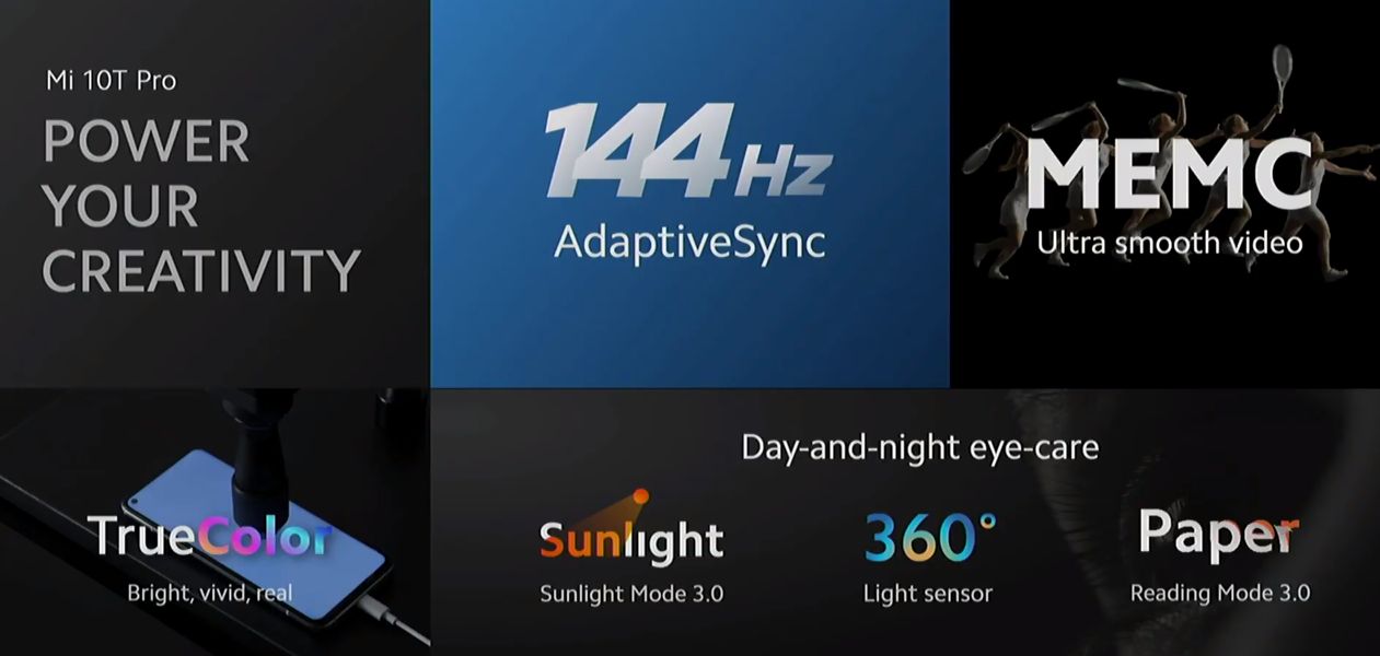 เริ่มกันที่รุ่นพี่อย่าง Mi 10T Pro ที่มาพร้อมกับหน้าจอแสดงผล IPS LCD ขนาด 6.67 นิ้ว ความละเอียด FHD+ อัตราส่วน 20:9 พร้อมรองรับ Refresh Rate 144Hz โดยมีฟีเจอร์ AdaptiveSync สามารถปรับเฟรมเรทได้ตามการแสดงสิ่งต่างๆ บนหน้าจอ ช่วยในการประหยัดแบตเตอรี่ได้ และ MEMC ที่ช่วยให้เนื้อหาวิดีโอมีความไหลลื่นยิ่งขึ้นแม้มีเฟรมเรทน้อย ขณะที่กล้องหน้ามีความละเอียด 20 ล้านพิกเซล