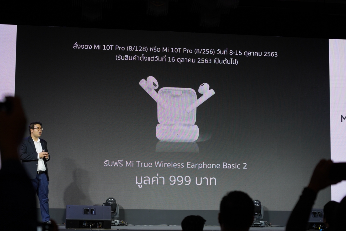 พิเศษสำหรับลูกค้า Mi 10T Pro (ทั้งรุ่นความจุ 8GB+128GB และ ความจุ 8GB+256GB) ที่สั่งจองระหว่างวันที่ 8 – 15 ตุลาคม 2563 นี้ รับฟรี หูฟังไร้สาย Mi True Wireless Earphones 2 Basic มูลค่า 999 บาท โดยลูกค้าที่จอง Mi 10T Pro ผ่านผู้บริการเครือข่าย AIS และ True สามารถรับสิทธิพิเศษสำหรับการซื้
