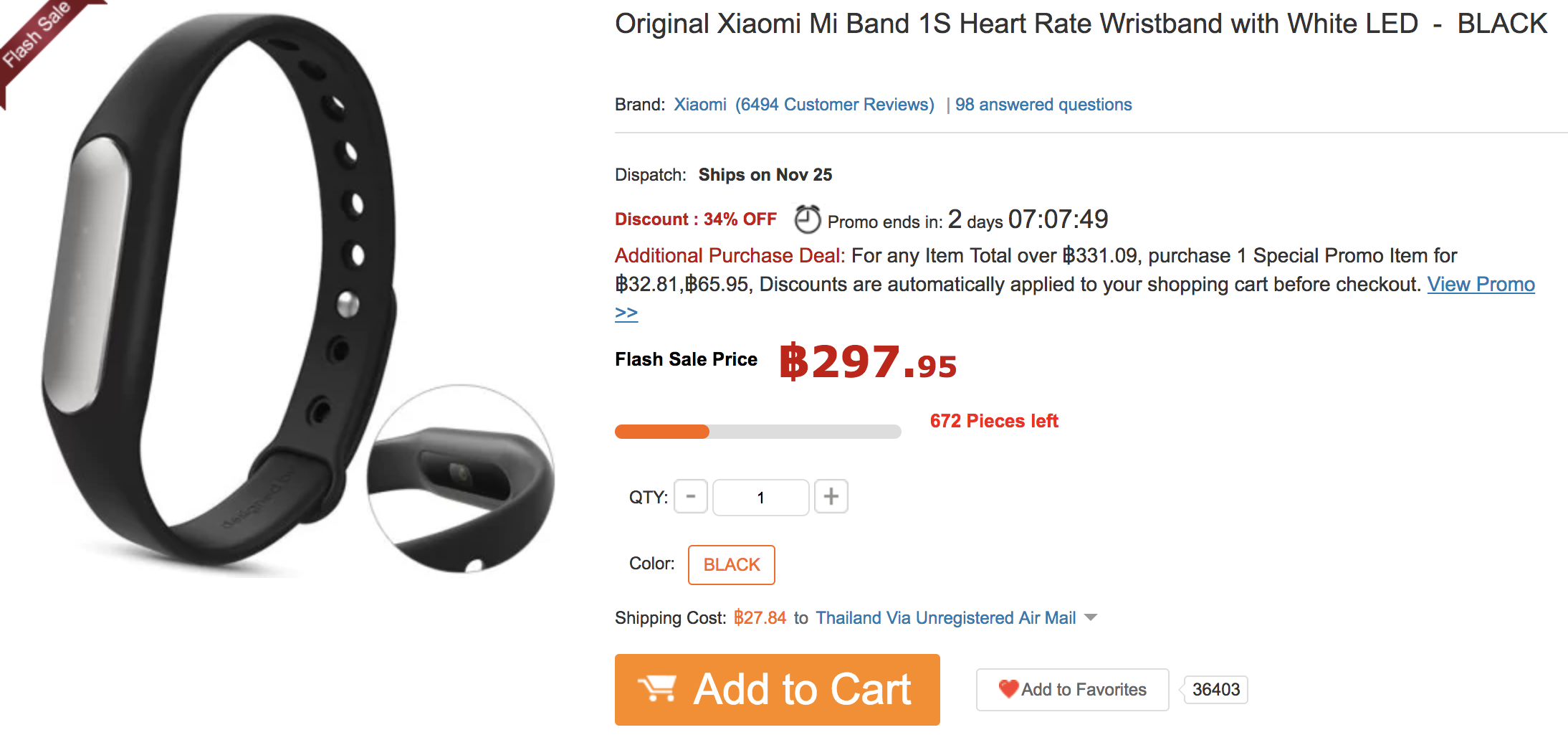 Mi Band 1s (Light-sensitive) ราคาเปิดตัว 99 หยวนหรือประมาณ 550 บาท โดยวันนี้มีโปรโมชั่นลดราคาเหลือประมาณ 235 บาท บนเว็บไซต์ออนไลน์ www.gearbest.com/smart-wristband/pp_263275.html