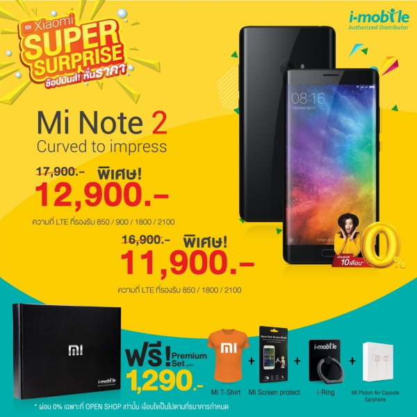 Xiaomi Super Surprise ช้อปมันส์หั่นราคา 26-27 สิงหาคม นี้เท่านั้น ไอ-โมบายจัดหนักให้ช้อป Xiaomi กันมันส์หลากหลายรุ่น พร้อมของแถมและโปรแรงๆมากมาย ขนมาครบทุกรุ่น จัดเต็มที่รุ่นใหญ่ เสปคอัดแน่น อย่างMi Note2 Rom 128 GB Ram 6 GB ราคา 12,900 บาท หั่นราคาลงถึงกว่า 5,000 บาท Mi5s Plus Rom 64 GB Ram 4 GB  ราคา 10,900 บาท และ Mi5s ราคา 9,900 บาท Rom 64 GB Ram 3 GB รุ่นเล็กก็ไม่น้อยหน้าไม่ว่าจะเป็น Redmi Note4/4x   Rom 32 GB Ram 3 GB ราคา 5,790 บาท Redmi 4X   Rom 32 GB Ram 3 GB ราคา 5,190 บาท และ Redmi 4A ราคา 3,890 บาท Rom 32 GB Ram 2  GB