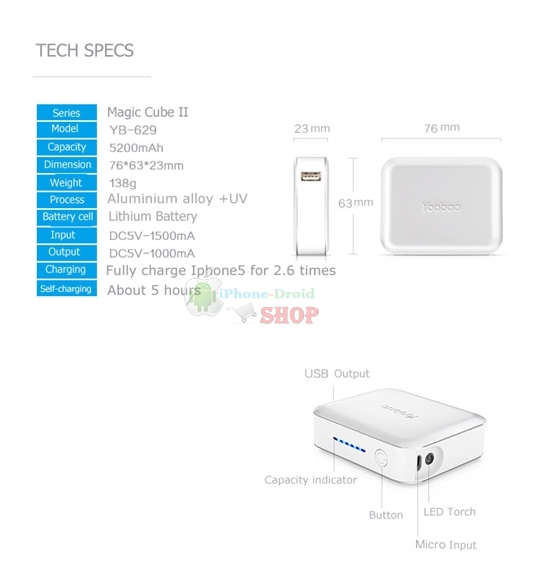 - Yoobao 5200 mAh Magic Cube II – YB629