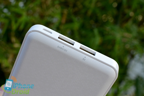 สำหรับพอร์ต USB ที่รองรับ Quick Charge 2.0 จะมีข้อความ 5V/9V/12V สำหรับใช้ชาร์จสมาร์ทโฟนที่รองรับ Quick Charge 2.0 ถ้าหากชาร์จสมาร์ทโฟนหรืออุปกรณ์ไม่รองรับการชาร์จเร็วก็เสียบชาร์จได้เช่นกัน แต่ตัวแบตสำรองจะปล่อยกระแสไฟฟ้าตามปกติ