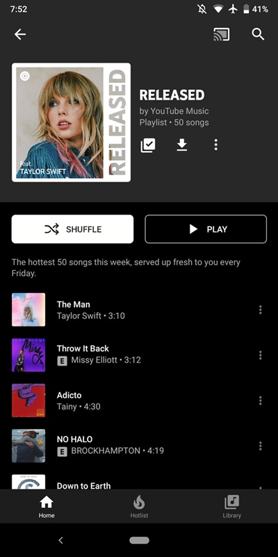 สำหรับการอัพเดทครั้งนี้ถือว่าเป็นข่าวดีสำหรับผู้ที่ใช้งาน YouTube Music เลยทีเดียวเพราะล่าสุดผู้ให้บริการ YouTube Music ได้ทำการอัพเดทฟีเจอร์ใหม่เพิ่มเข้ามาเพื่อให้ผู้ใช้งานเข้าถึงเพลงโปรดมากยิ่งขึ้น ฟีเจอร์ใหม่นี้มีชื่อว่า “Released” ซึ่งเป็นเมนูที่รวมเพลงฮิตไว้ทั้งหมด 50 เพลงเหมือกับที่ Apple Music และ Spotify