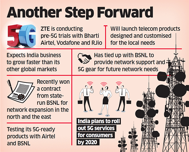 The Economic Times รายงานว่า 3 ค่ายมือถือในอินเดีย ได้แก่ Bharti Airtel, Vodafone India และ Reliance Jio กำลังทำงานร่วมกับค่ายผู้ผลิตสมาร์ทโฟนจีน ZTE เพื่อทดสอบเทคโนโลยี 5G ซึ่งอินเดียเป็นหนึ่งในตลาดไร้สายที่ใหญ่ที่สุดในโลกและเป็นตลาดที่มีพื้นที่กว้างขวางสำหรับขยายธุรกิจ ตามคำพูดของนาย Fan Xiaobing ประธานฝ่ายการตลาดและโซลูชั่นของ ZTE